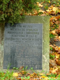 Po wyjściu z zamku schodzimy szerokimi schodami w dół. Na końcu po lewej stronie umieszczona jest tablica ukazująca plan byłej dzielnicy żydowskiej zlikwidowanej przez Niemców w 1942 roku. Popatrzmy na układ ulic jaki istniał przez setki lat. Popatrzmy na Plac Zamkowy przez którego środek do 1942 roku biegła ulica Szeroka. Idąc placem w stronę głównej drogi na elewacji kamienicy przy Placu Zamkowym 10 wmurowana jest tablica informująca, że tutaj w nieistniejącym domu w końcu XVIII wieku mieszkał Jaakow Jicchak Horowic zwany Widzącym z Lublina. Dalej idziemy wzdłuż Zamku Lubelskiego Aleją Tysiąclecia. Tutaj przy chodniku zobaczymy tablicę informującą o istnieniu w tym miejscu główna synagoga lubelska – Synagoga Maharszala. Jeśli spojrzymy powyżej tablicy zobaczymy fragment XIV wiecznych murów zamku. Jest to tak zwana Baszta Żydowska. Nazwa ta może mieć związek z tym, że w 1523 roku Żydzi Podzamcza otrzymali od króla przywilej za pomoc w przebudowie zamku lub może z powodu sąsiedztwa z centrum miasta żydowskiego.